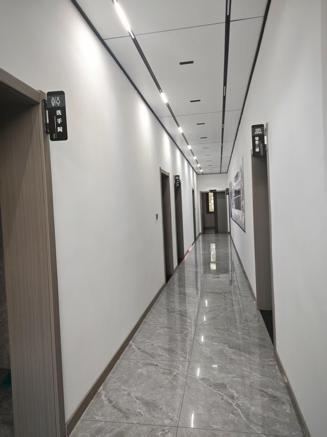 On the second floor, there are 3 departments & 4 departments for the Chinese market, as well as procurement department and a meeting area.