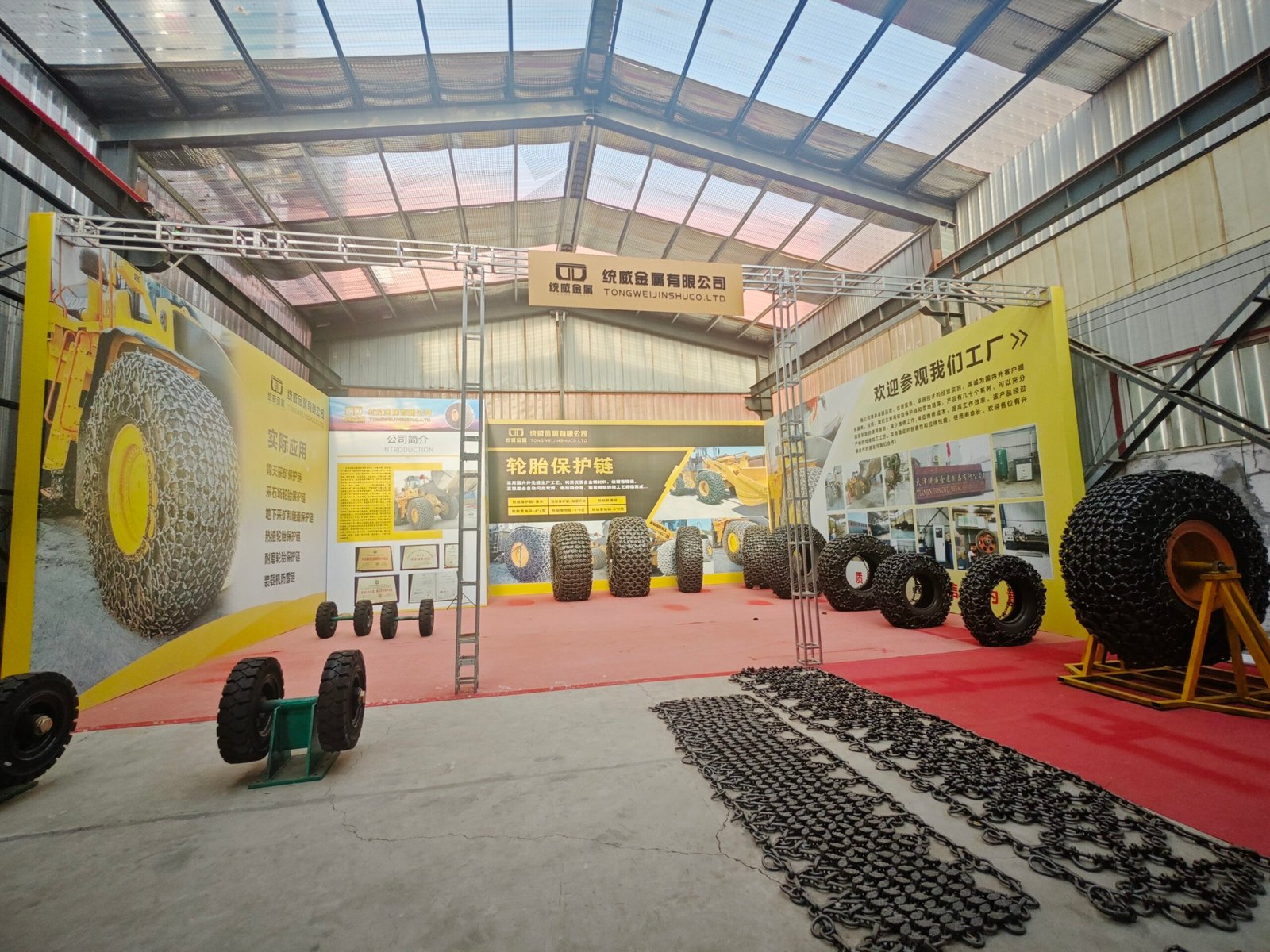 The office building is located next to the factory. In the courtyard of the office building, there is a display hall for our tire protection chains and loader anti-skid chains.